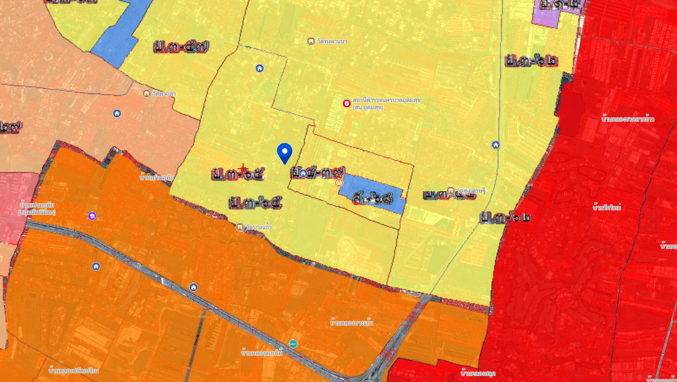• ผังเมือง: พื้นที่สีเหลือง (ที่ดินประเภทที่อยู่อาศัยหนาแน่นน้อย)